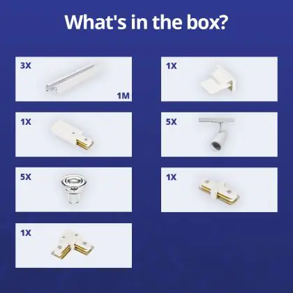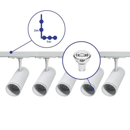 Complete Set 1-Fase Rail L 1 x 2 Meter Wit | incl. 5x Spot + GU10 2700K 3W Dimbaar + Eindkap, Voedingsconnector en L -Verbindingsstuk