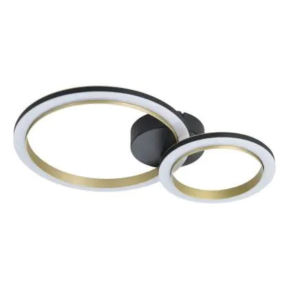 Eglo Plafondlamp Calliera Staal Zwart, Messing 12W 1500lm - 830 Warm Wit | Dimbaar