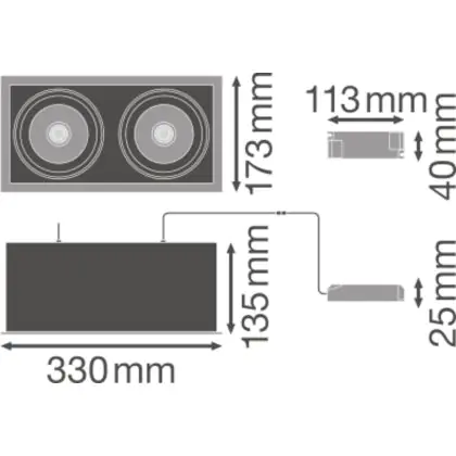 Ledvance LED Spot Vierkant Multi Kantelbaar Zwart-Wit 2x30W 5400lm 38D - 830 Warm Wit | Zaagmaat 320x160mm